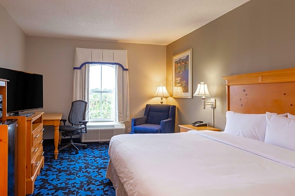 Whirlpool tub, HDTV, sofa bed, work desk, coffeemaker, free WiFi access Enjoy a comfortable stay in this studio suite featuring one king-sized, clean and fresh Hampton bed®. Unwind in the soothing whirlpool bath or refresh under the WaterPik shower. The curved shower rod provides extra space and light when showering. Watch movies on the HDTV from the comfort of the sofa bed. Catch up with work at the large desk and surf the web with free WiFi access. This room also features a handy coffeemaker to help you feel at home.